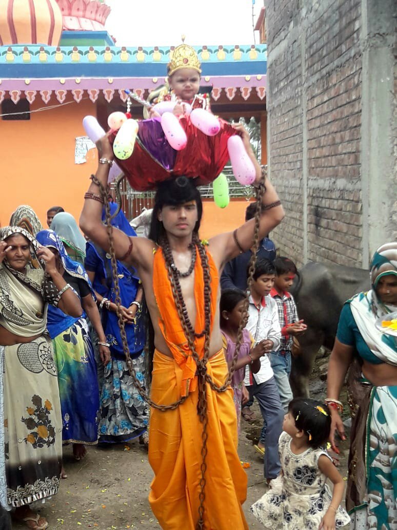 महाराज जी ने श्रीकृष्ण जन्म की कथा को विस्तार पूर्वक बताया और जैसे ही परिसर में वासुदेव कृष्ण को लेकर पहुंचे, जयघोष चारों ओर गूंज उठी। महिलाओं व युवतियों ने नृत्य किया और बड़े हर्षोल्लास के साथ श्रीकृष्ण जन्मोत्सव धुमधाम से मनाया गया।श्रीकृष्ण जन्मोत्सव के समय पूरा वातावरण धर्ममय हो गया ।