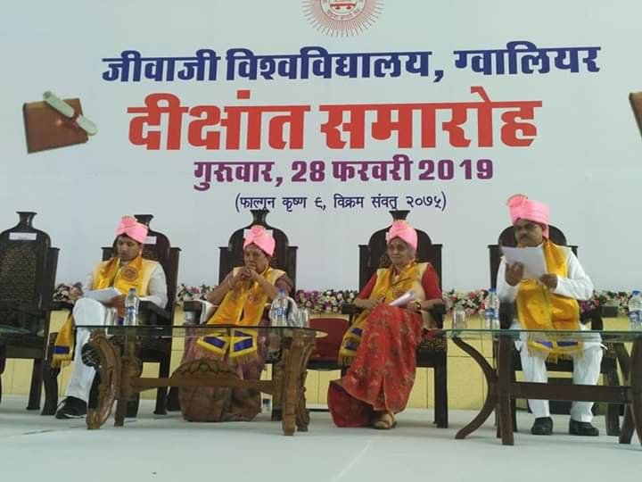 ग्वालियर के जीवाजी विश्वविद्यालय के दीक्षांत समारोह में राज्यपाल श्रीमती आनंदीबेन पटेल ने छात्रों को पुरस्कार वितरित किये। इस मौके पर खेल एवं युवा कल्याण उच्च शिक्षा मंत्री श्री जीतू पटवारी, अमर ज्योति संस्थान की संस्थापक डॉ उमा तुली, जीवाजी विश्वविद्यालय की कुलपति प्रोफेसर संगीता शुक्ला भी मंचासीन थे। राज्यपाल श्रीमती आनंदीबेन पटेल ने विभिन्न संकायों में सर्वोच्च स्थान प्राप्त करने वाले छात्र-छात्राओं को स्वर्ण पदक प्रदान किये।